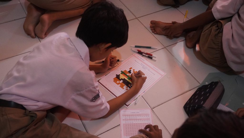 Para siswa sangat senang memainkan permainan ini karena tidak hanya membantu mereka belajar matematika, tetapi juga membuat mereka mengekspresikan kreativitas mereka dengan mewarnai buku kerja dalam bentuk kisi-kisi pixel art berdasarkan hasil yang mereka dapatkan dalam permainan. Siswa kelas 3 diajak bermain-main dengan ide perkalian, dan siswa kelas 5 diberi tugas yang menyenangkan dan menarik untuk membantu mereka belajar tentang koordinat Cartesius.